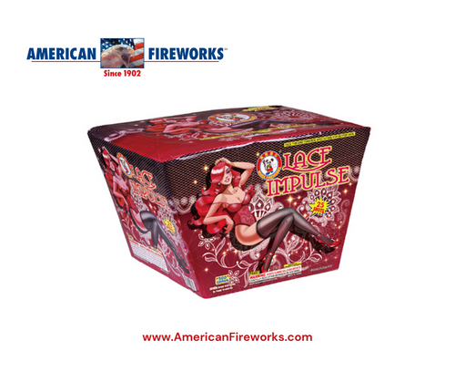 This 25 shot, 500 gram fan cake has colorful breaks that end with an amazing lace effect!