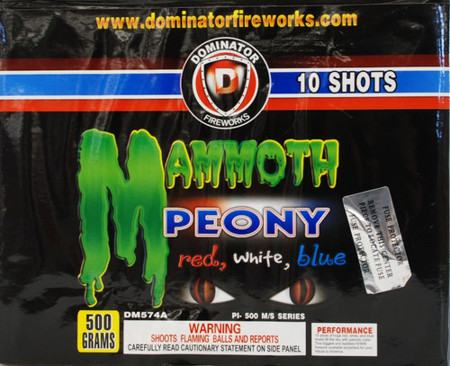 One of the amazing “Mammoth Line” products from Dominator! This is 10 huge peony shots with hundreds of white blinking lights!