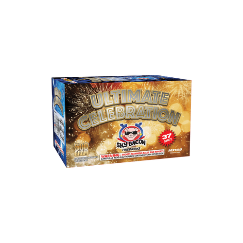 Ultimate Celebration is a 37 shot, 200 gram cake from Sky Bacon Fireworks!
